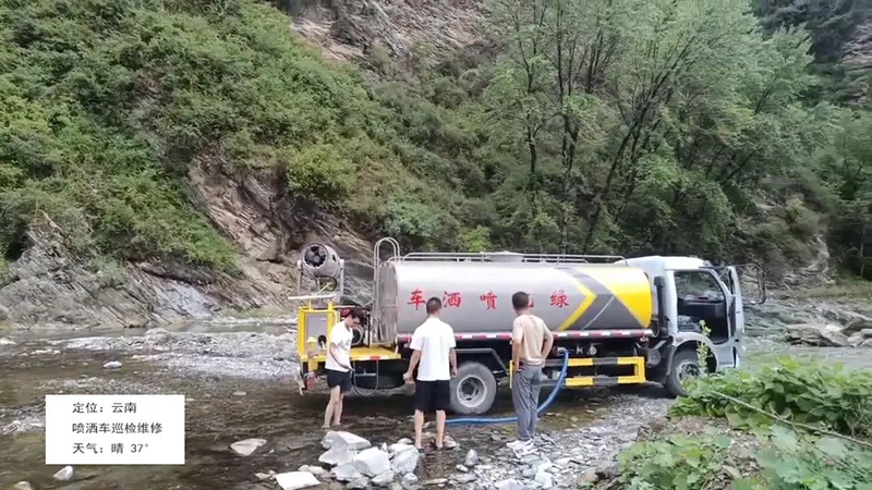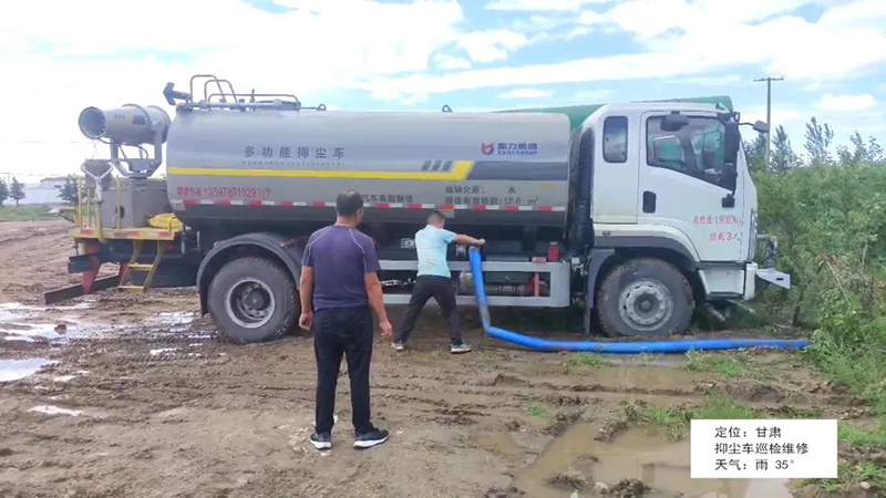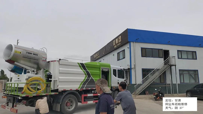 甘肃,高温37度,阴天闷热,售后人员对抑尘车进行巡检